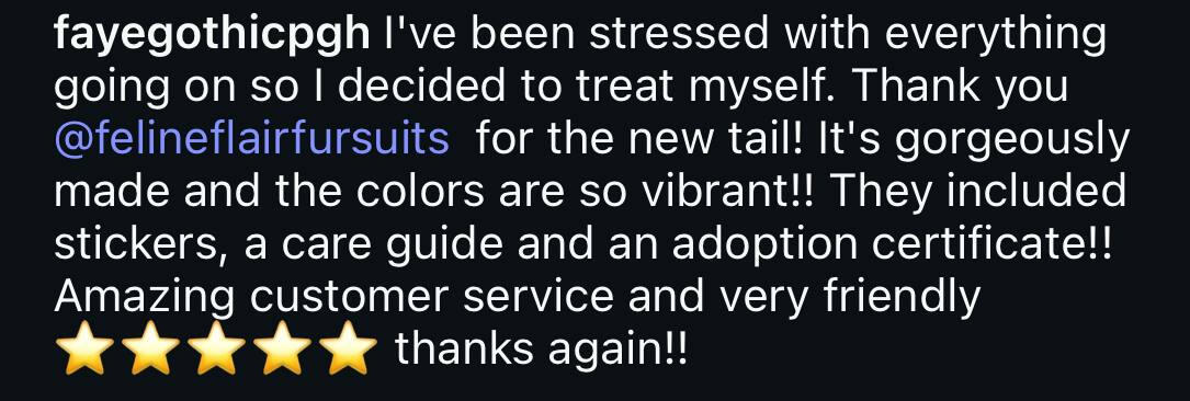 Hi there! I go by Buster and I established my business, Feline Flair Fursuits, in 2020 during the lockdown. At the time, I was a young kid with big ambitions to bring peoples' creations to life! Now, I am slowly working on building a portfolio so people feel assured knowing I will work tirelessly to make their product perfect!I focus on respectful interactions and quality products.When I'm not crafting, I spend my time as a veterinary technician! I have a huge passion for all-things animal!When you support me, you're supporting a young working-class trans man! So THANK YOU!I hope you feel comfortable taking a look at what I have to offer, and please do not hesitate to reach out!